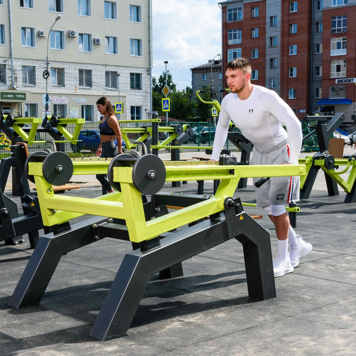 - Несущая конструкция уличного тренажера выполнена из профильных труб 140*140*5 мм, с деталями, изготовленными из листового материала толщиной 8 и 4 мм.
