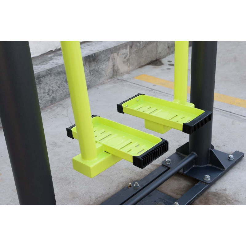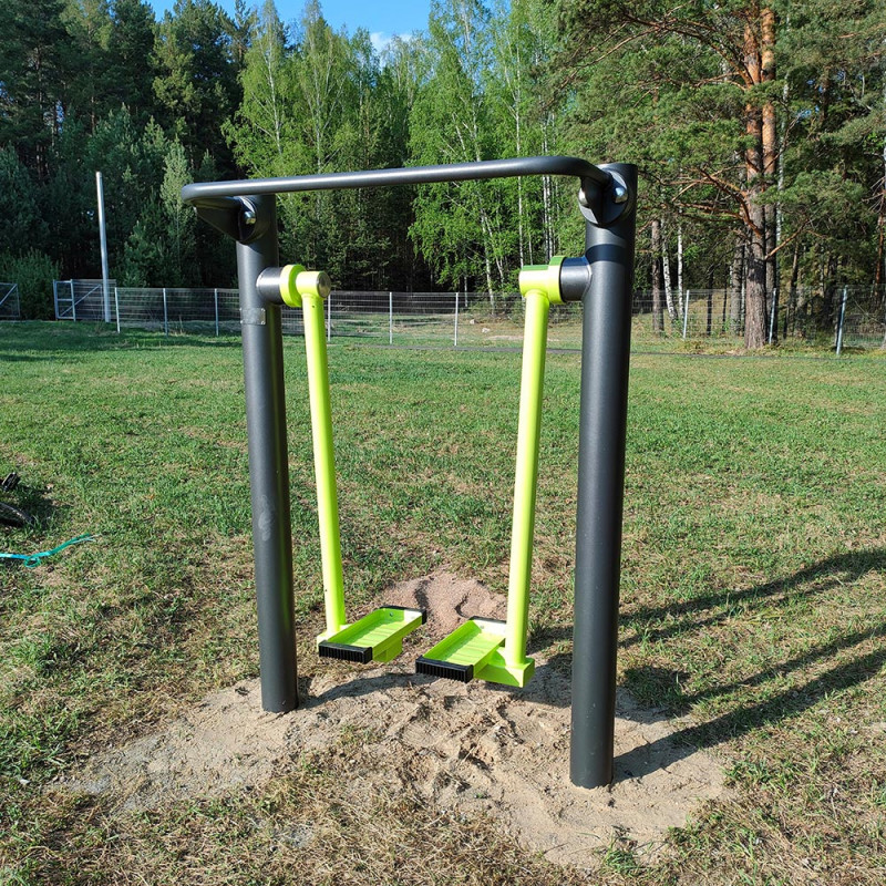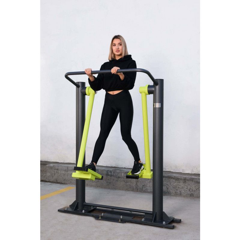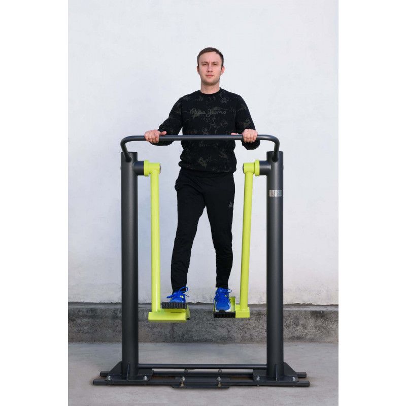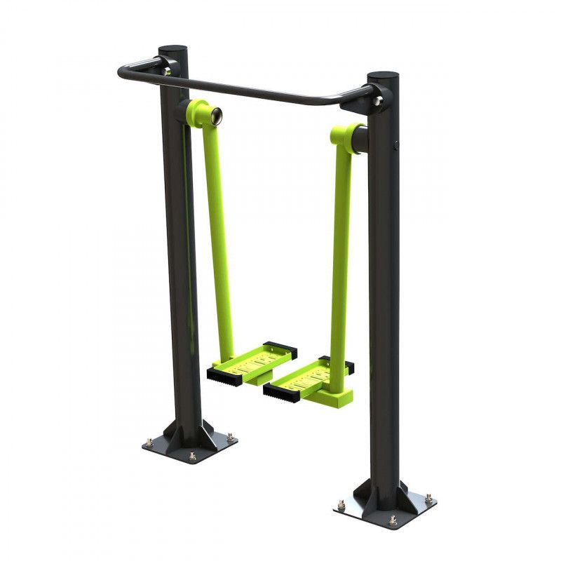 Конструктивно тренажёр состоит из двух параллельных столбов, расположенных параллельно друг другу, и связанных между собой стальной ручкой- упором. Через узлы вращения к столбам подвешены рычаги с ногоступами. За счёт применения специально разработанных узлов с ограничением вращения, в конструкции отсутствуют открытые отбойные элементы, что ведёт к уменьшению травмоопасности и исключает любое соударение частей тренажёра. Угол отклонения рычага 60˚ в каждую сторону.