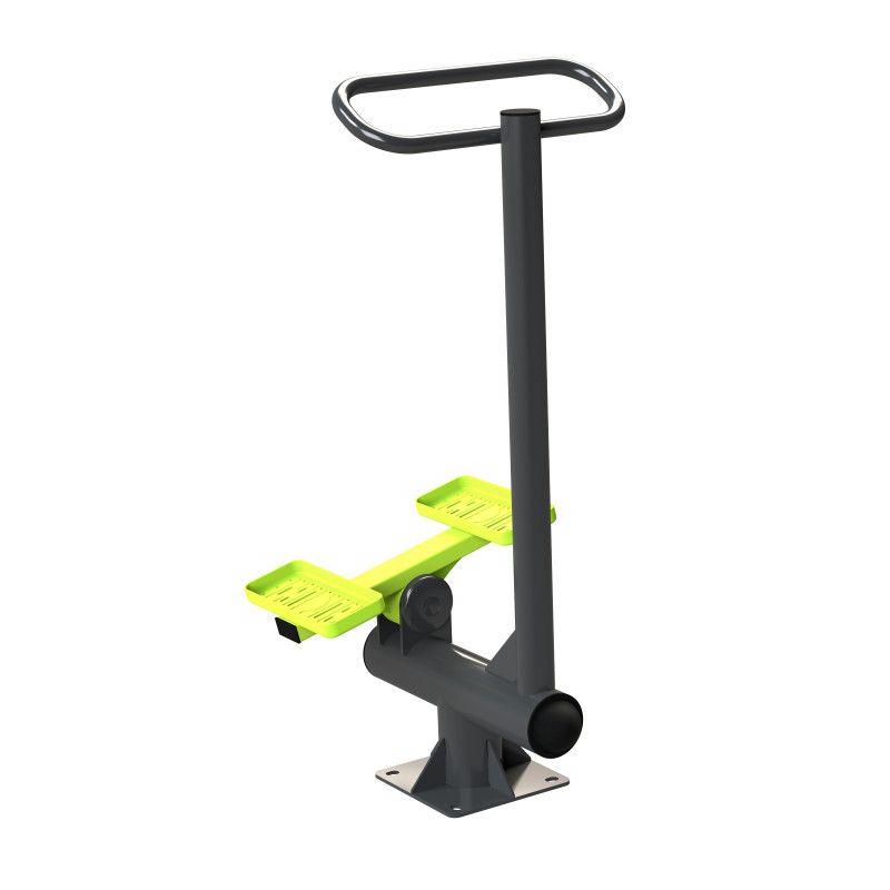 Тренажёр предназначен для тренировки мышц ног. Конструктивно тренажёр состоит из рамы, и установленного на узел ограниченного вращения рычага с ногоступами. За счёт применения специально разработанных узлов с ограничением вращения, в конструкции отсутствуют открытые отбойные элементы, что ведёт к уменьшению травмоопасности. Все детали тренажёра окрашены порошковой краской на полиэфирной основе. Торцы труб закрыты пластиковыми заглушками. Монтаж тренажера производится на закладную, забетонированную заранее.