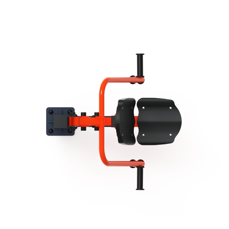 - Рычаг и связи: Выполнен из стального профиля 30х30 мм и трубы диаметром 32 мм и втулок. Рычаг соединяется со стойкой шарнирными узлами. Шарнирные узлы снабжены подшипниками 180503/ГПЗ. Рычаг и связи окрашены порошковой краской. На опорах для рук имеются пластиковые ручки. Размеры различные.