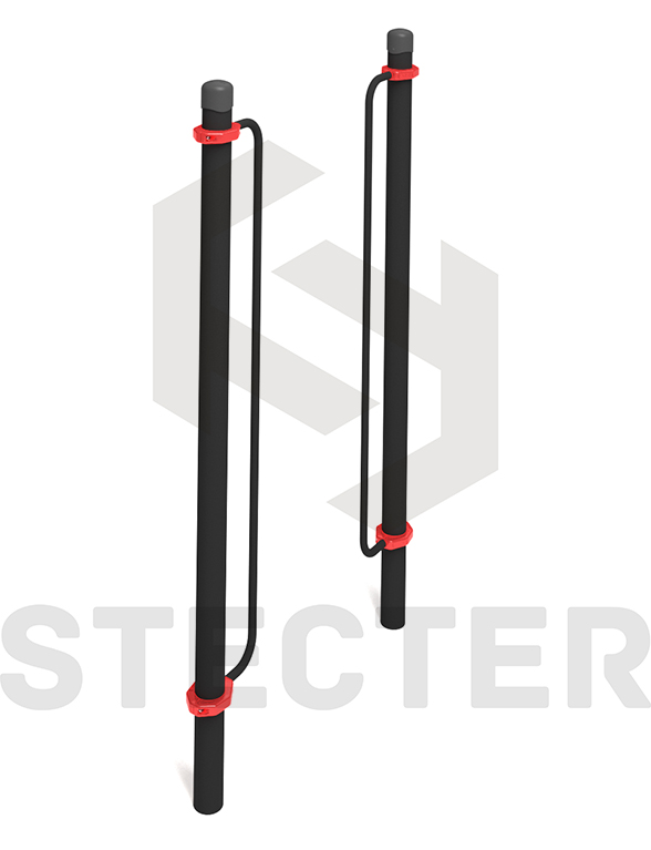 Комплекс состоит из двух опорных столбов высотой 2550 мм и двух поручней, представляющих собой вертикально расположенные жерди длиной 1930 мм, концы которых симметрично изогнуты к столбам под углом 90 градусов. Расстояние между центрами опорных столбов 1308 мм. Поручни крепятся к опорным столбам при помощи хомутов на высоте 2200 мм (вверху) и 304 мм (внизу) от поверхности основания. Длина комплекса не более 1450 мм.