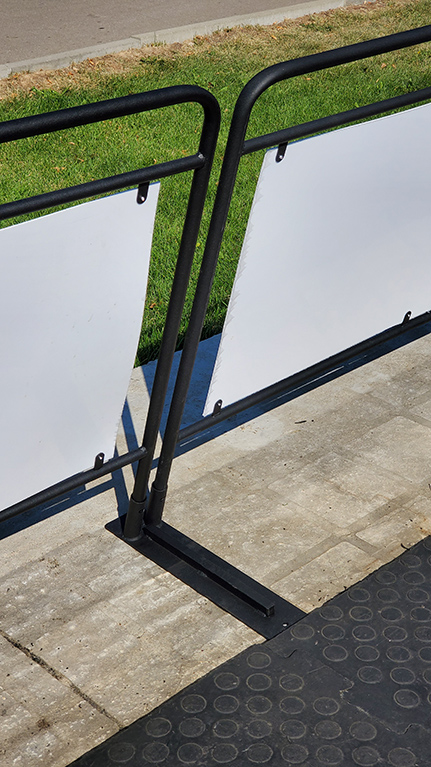 - Основание мобильного ограждения STECTER изготовлено из толстостенной стальной трубы и листа.