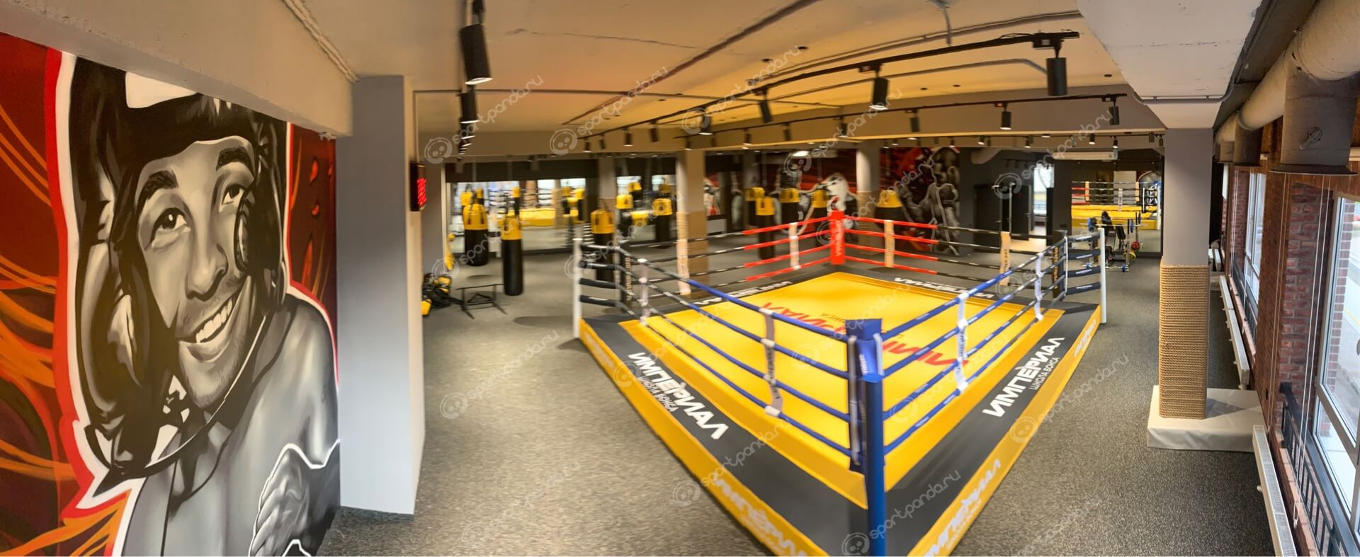 Укомплектовали зал для единоборств: боксерский ринг на помосте, мешки и груши, защита колонн, канаты, медболы и пр. Привезли изделия и собрали их в срок — уложились за 3 дня.