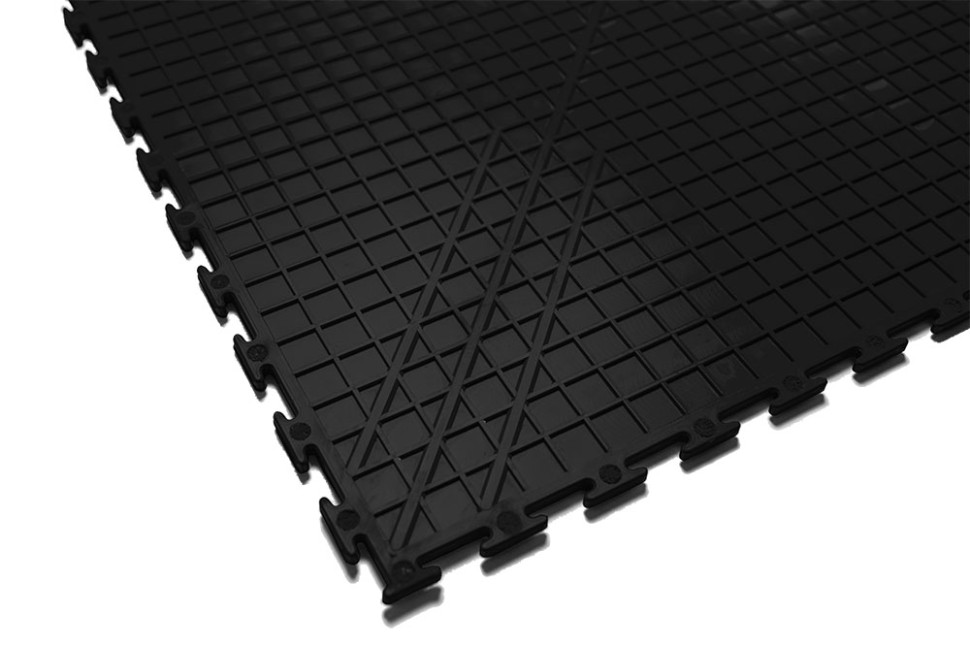 Данный вид креплений является наиболее надежным и используется европейскими производителями напольных покрытий. На каждой стороне плитки находятся 16 замковых креплений, которые прочно смыкаются между собой. Таким образом, плитки имеют двойную систему креплений, что делает напольное покрытие еще более прочным и водонепроницаемым.