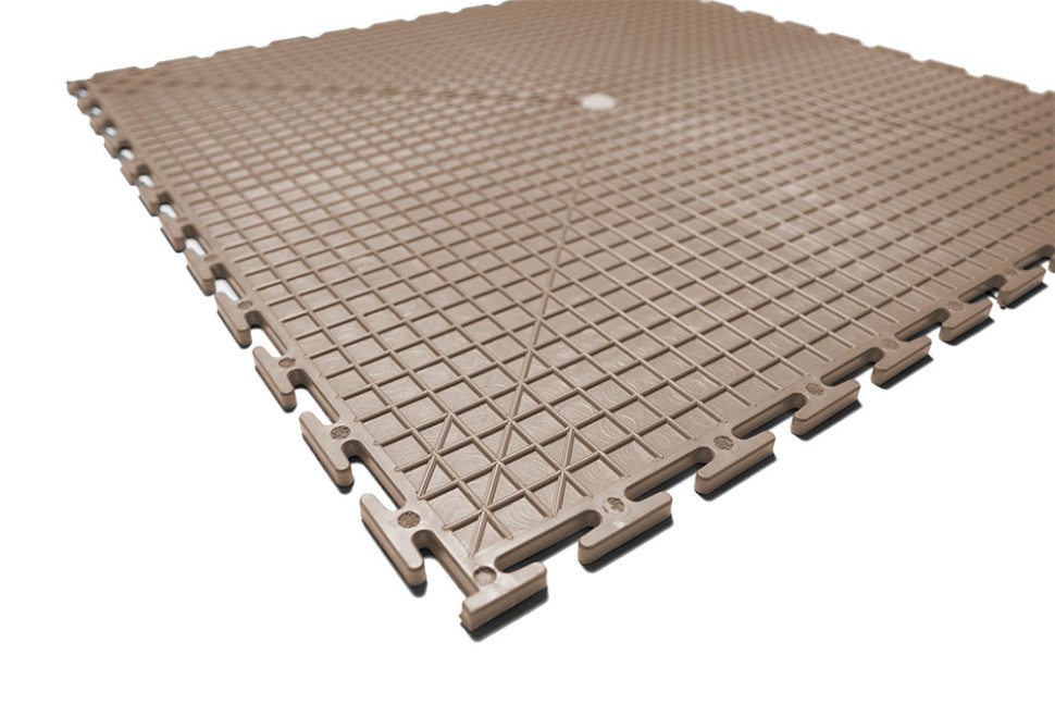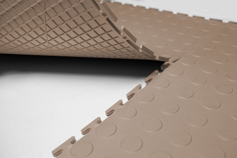Модульный пол Standart Prom очень удобен в эксплуатации - любые загрязнения с легкостью удаляются стандартными методами уборки. Выпускается в модулях толщиной 5, 7 и 9 мм. Покрытие толщиной 7 и 9 мм устойчиво к падению тяжелых предметов и перемещению большегрузной техники - не трескается и не колется. Т-образный замок обеспечивает надежное крепление без клея и гвоздей и герметичность покрытия.