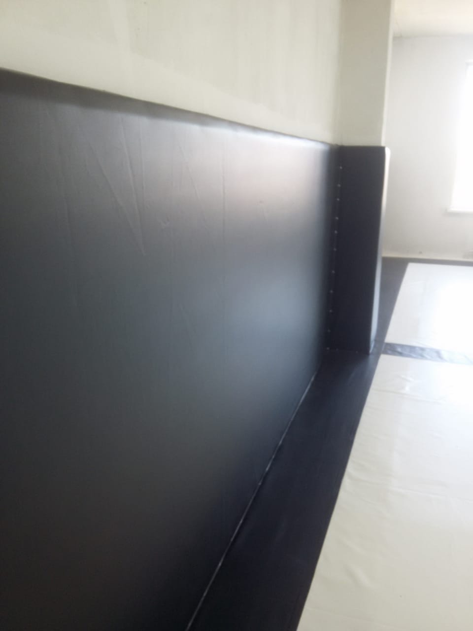 Данные стеновые протекторы укладываются по типу борцовского ковра: на стену крепятся маты, сверху натягивается и фиксируется цельное покрытие.