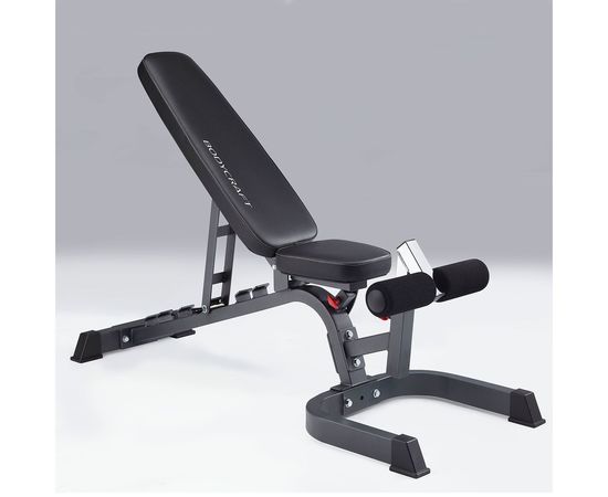 Вместе с силовой скамьей идет упор для ног с двумя валиками, который поможет вам лучше контролировать движения и сосредоточиться на выполнении упражнений. В комплект также входит парта для бицепсов BODYCRAFT F610, которая легко устанавливается, снимается и хранится. Она обита мягким и долговечным винилом и имеет пять уровней высоты. С её помощью пользователь сможет выполнять различные упражнения на бицепс, включая сгибание рук со штангой и с гантелями, а также разгибание рук с использованием снарядов. Это помогает разнообразить тренировочный процесс и увеличить эффективность занятий. Кроме того, в конструкции парты предусмотрен амортизатор для штанги, делающий занятия более безопасными.