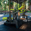 - Изготовление деталей осуществляется с применением технологии шип-паз на высокоточных станках лазерной резки, что обеспечивает точность линейных размеров, точность позиционирования деталей в сборочных узлах и стабильность размеров конструкции тренажера. Окраска металлических частей изделия выполнена методом порошковой окраски, обеспечивающей высокие антикоррозийные свойства, прочность, износостойкость и экологичность покрытия. Деревянные элементы покрываются защитным текстурным покрытием для древесины. Состав образует на поверхности древесины воздухопроницаемое, влагоотталкивающее полимерное покрытие. Сохраняет текстуру древесины и придает ей нужный оттенок. Надёжность и прочность соединений разъемных элементов тренажера, обеспечивается применением оцинкованного качественного крепежа.